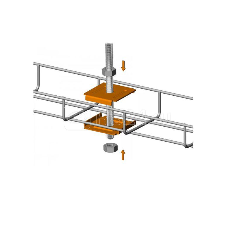 Фиксатор для подвеса проволочного лотка используется для подвеса проволочного лотка на шпильку (М6, М8, М10).