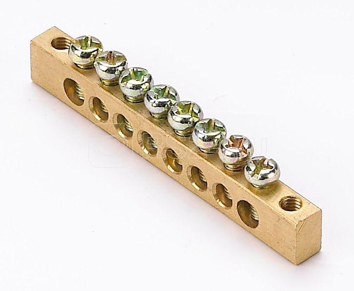 Шина нулевая серии ШН-102 Dekraft; исполнение – колодка на 8 зажимов; сечение – 6х9 мм; длина – 65 мм; максимальный ток – 100 А; материал – высококачественная электротехническая бронза; крепёж – по центру; кол-во в упаковке – 10 шт. Нулевая шина позволяет создать сразу несколько точек подключения нагрузок от общего ввода к нулевому проводнику, обеспечить неразрывность цепи на участке от заземления до конкретной нагрузки, а также выполнить разделение защитного и рабочего нулевых проводников.