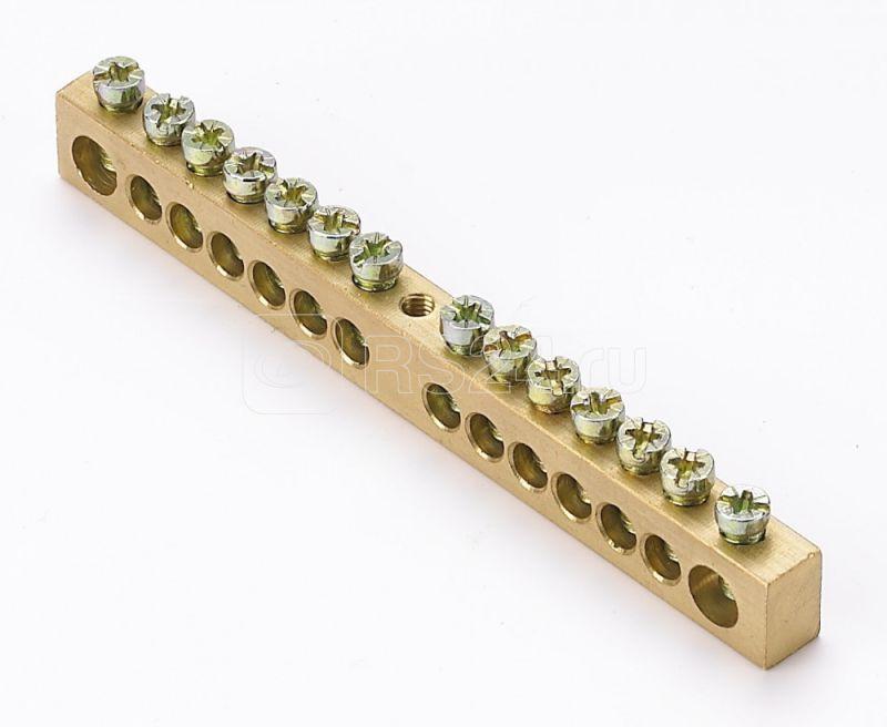 Шина нулевая серии ШН-101 Dekraft; исполнение – колодка на 14 зажимов; сечение – 8х12 мм; длина – 115 мм; максимальный ток – 125 А; материал – высококачественная электротехническая бронза; крепёж – по центру; кол-во в упаковке – 10 шт. Нулевая шина позволяет создать сразу несколько точек подключения нагрузок от общего ввода к нулевому проводнику, обеспечить неразрывность цепи на участке от заземления до конкретной нагрузки, а также выполнить разделение защитного и рабочего нулевых проводников.
