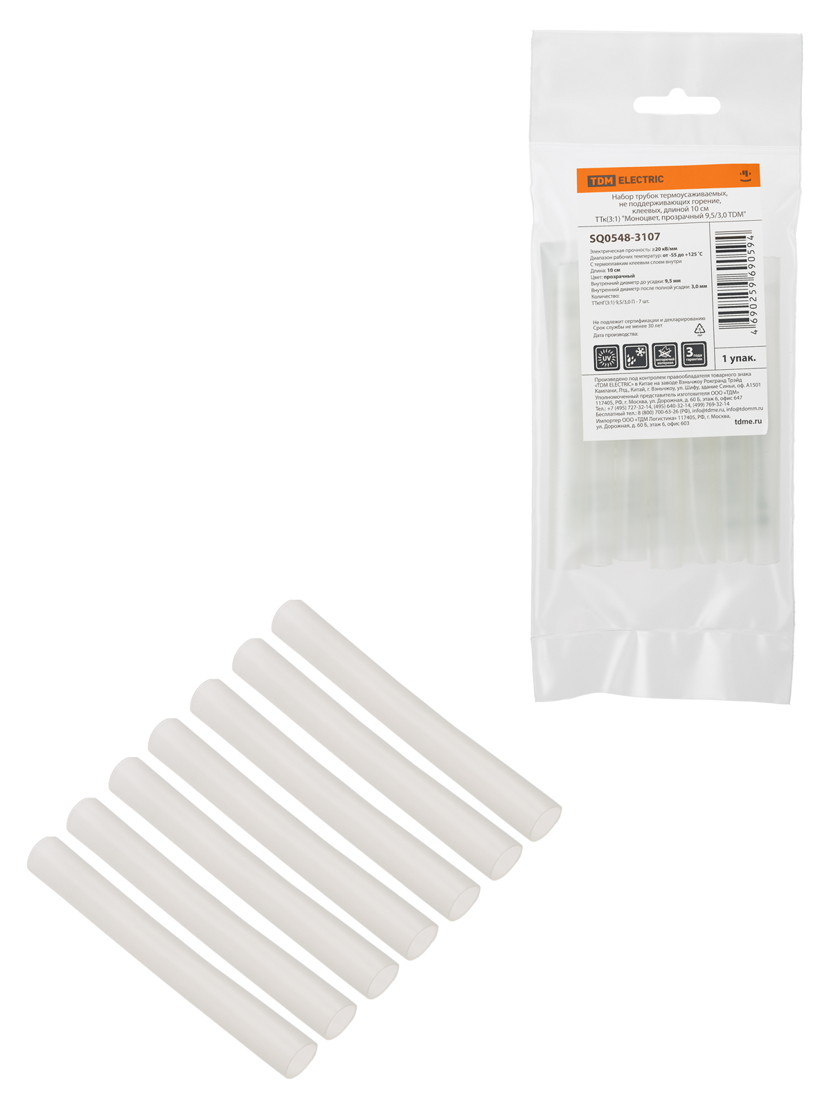 Набор трубок термоусаживаемых, не поддерживающих горение, клеевых, длиной 10 см ТТк(3:1) “Моноцвет, прозрачный 9,5/3,0 TDM”