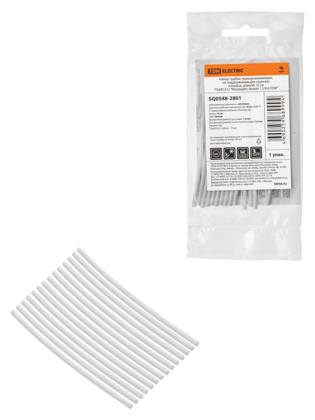 Набор трубок термоусаживаемых, не поддерживающих горение, клеевых, длиной 10 см ТТкНГ(3:1) “Моноцвет, белый 1,5/0,6 TDM”