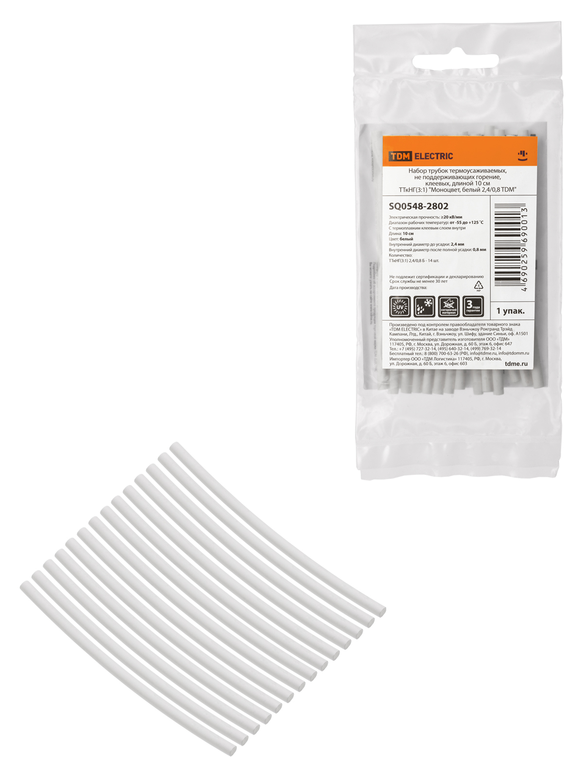 Набор трубок термоусаживаемых, не поддерживающих горение, клеевых, длиной 10 см ТТкНГ(3:1) “Моноцвет, белый 2,4/0,8 TDM”