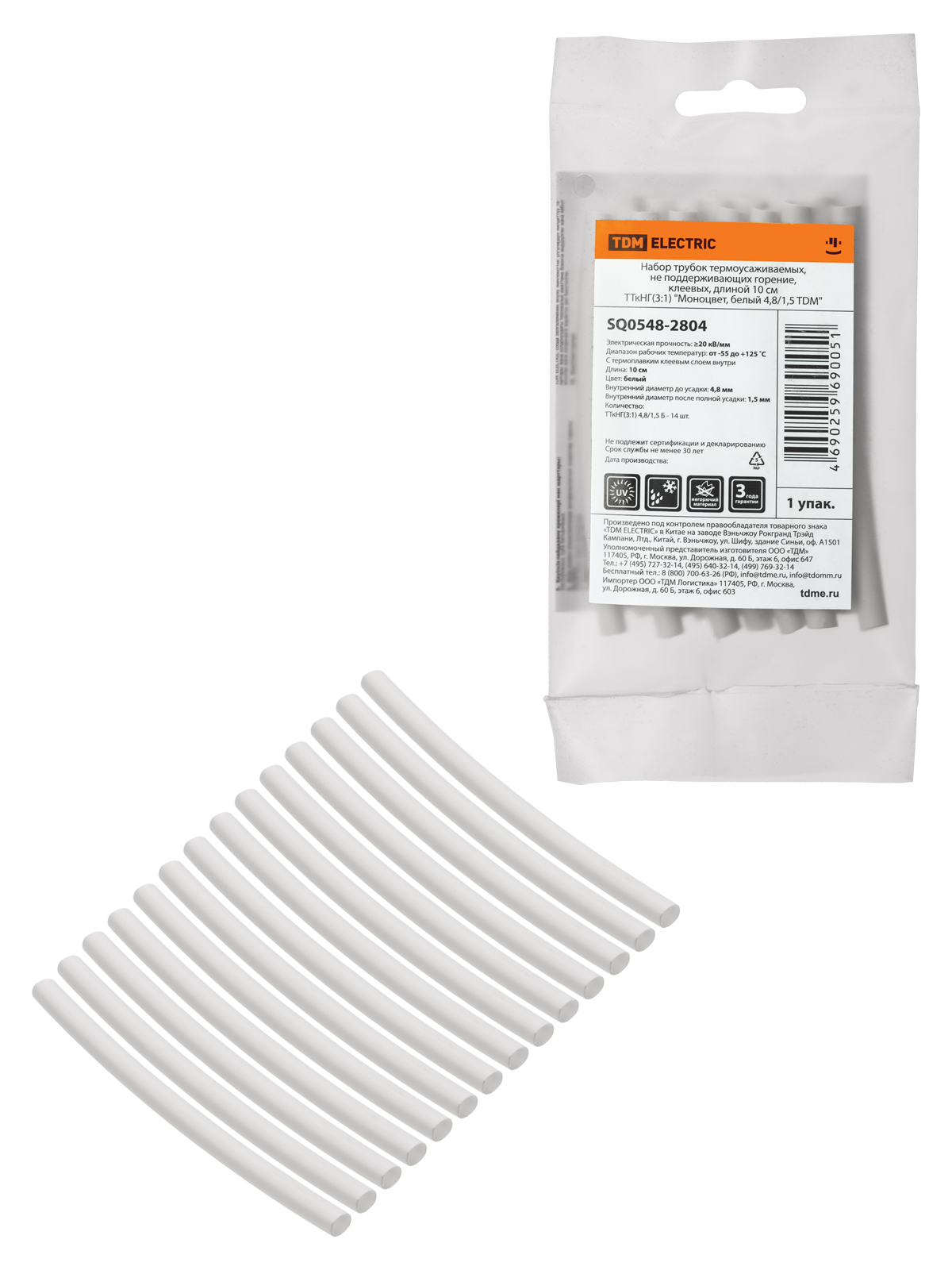 Набор трубок термоусаживаемых, не поддерживающих горение, клеевых, длиной 10 см ТТкНГ(3:1) “Моноцвет, белый 4,8/1,5 TDM”