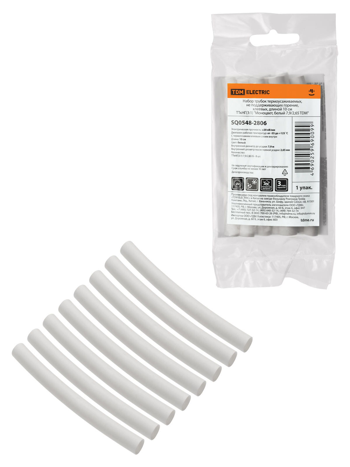 Набор трубок термоусаживаемых, не поддерживающих горение, клеевых, длиной 10 см ТТкНГ(3:1) “Моноцвет, белый 7,9/2,65 TDM”