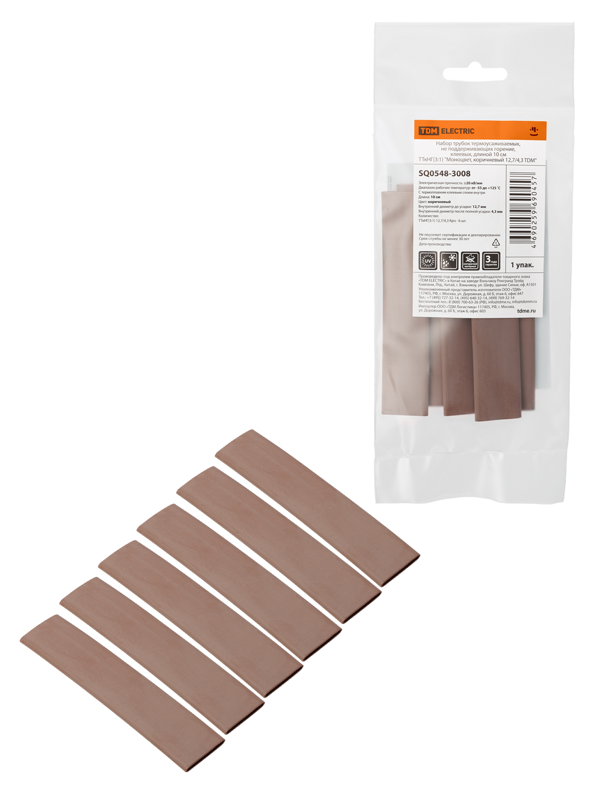 Набор трубок термоусаживаемых, не поддерживающих горение, клеевых, длиной 10 см ТТкНГ(3:1) “Моноцвет, коричневый 12,7/4,3 TDM”